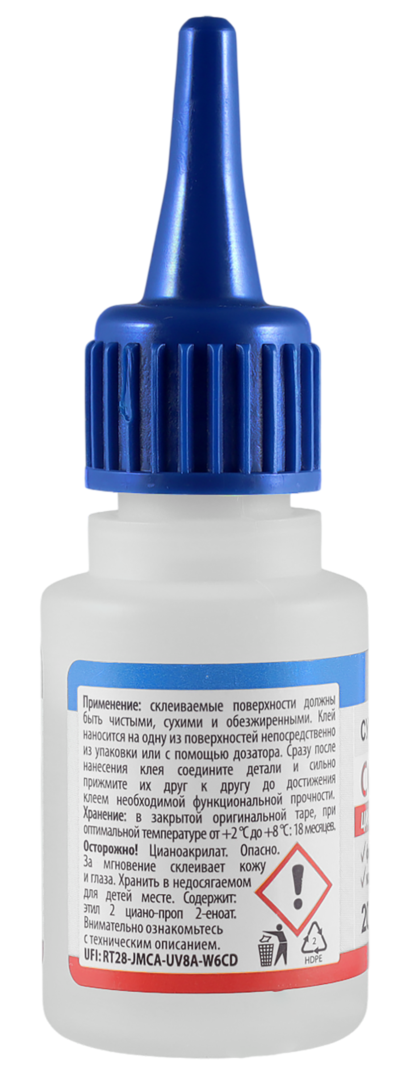 Прозрачный однокомпонентный низковязкий цианоакрилатный клей для склеивания пластмасс, металла, резины, кожи и многих других материалов.