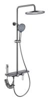 Душевая стойка KABRERA в цвете оружейной стали оснащена латунным смесителем и керамическим картриджем 30 мм. В комплект входит пластиковый аэратор с увеличенной проходимостью и усиленный ПВХ шланг No Twist длиной 1,5 м. Подвижный держатель лейки и душевая ручная лейка диаметром 130 мм обеспечивают удобство использования. Верхний душ диаметром 255 мм и высота стойки 125 см. Керамический дивертор и комплект крепления включены. Артикул: 37294KBGM.